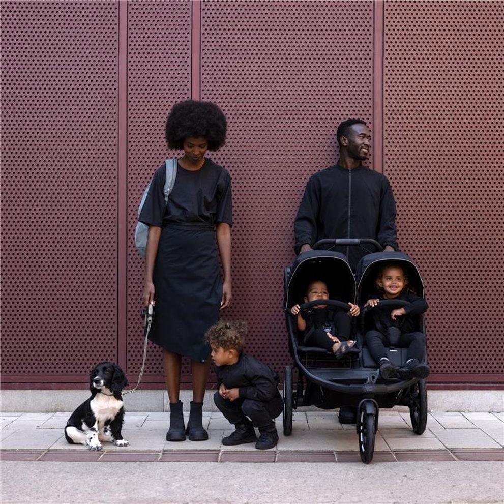 terrængående søskendeklapvogn sort