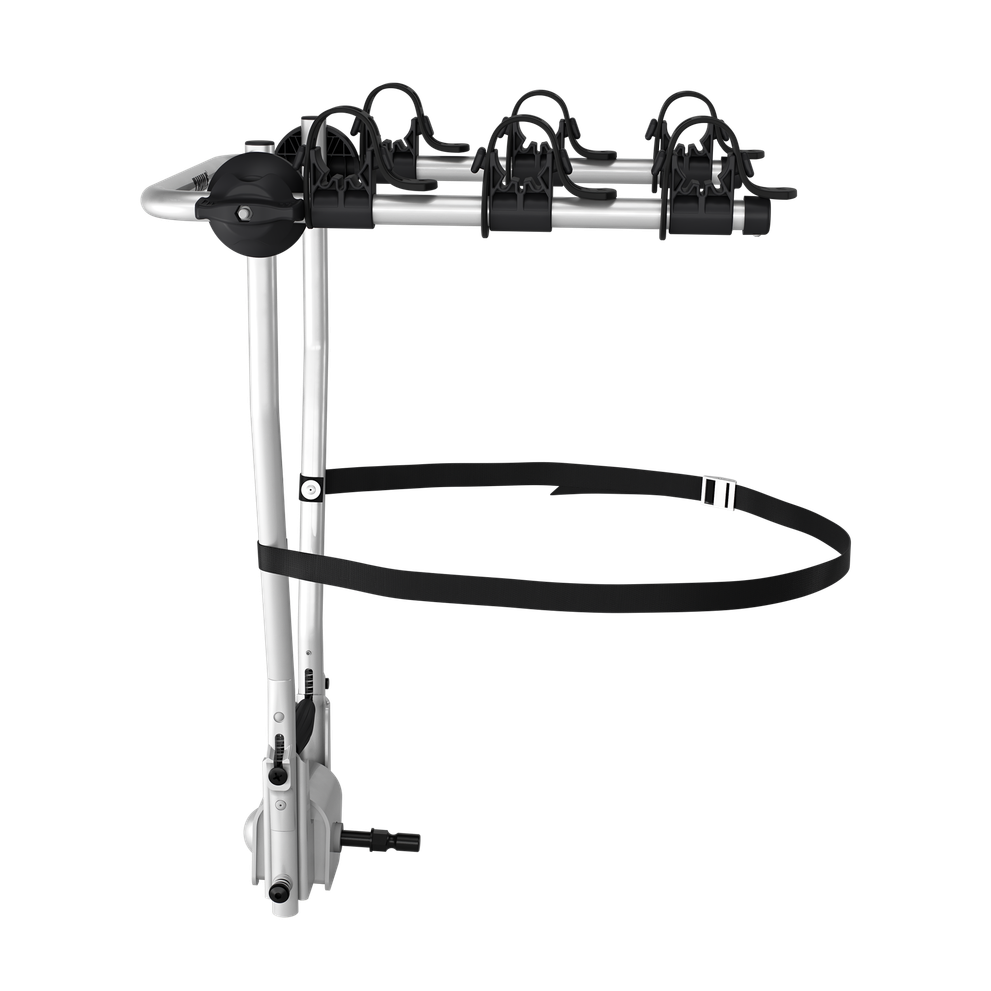 3-bike hanging towbar bike rack tiltable silver