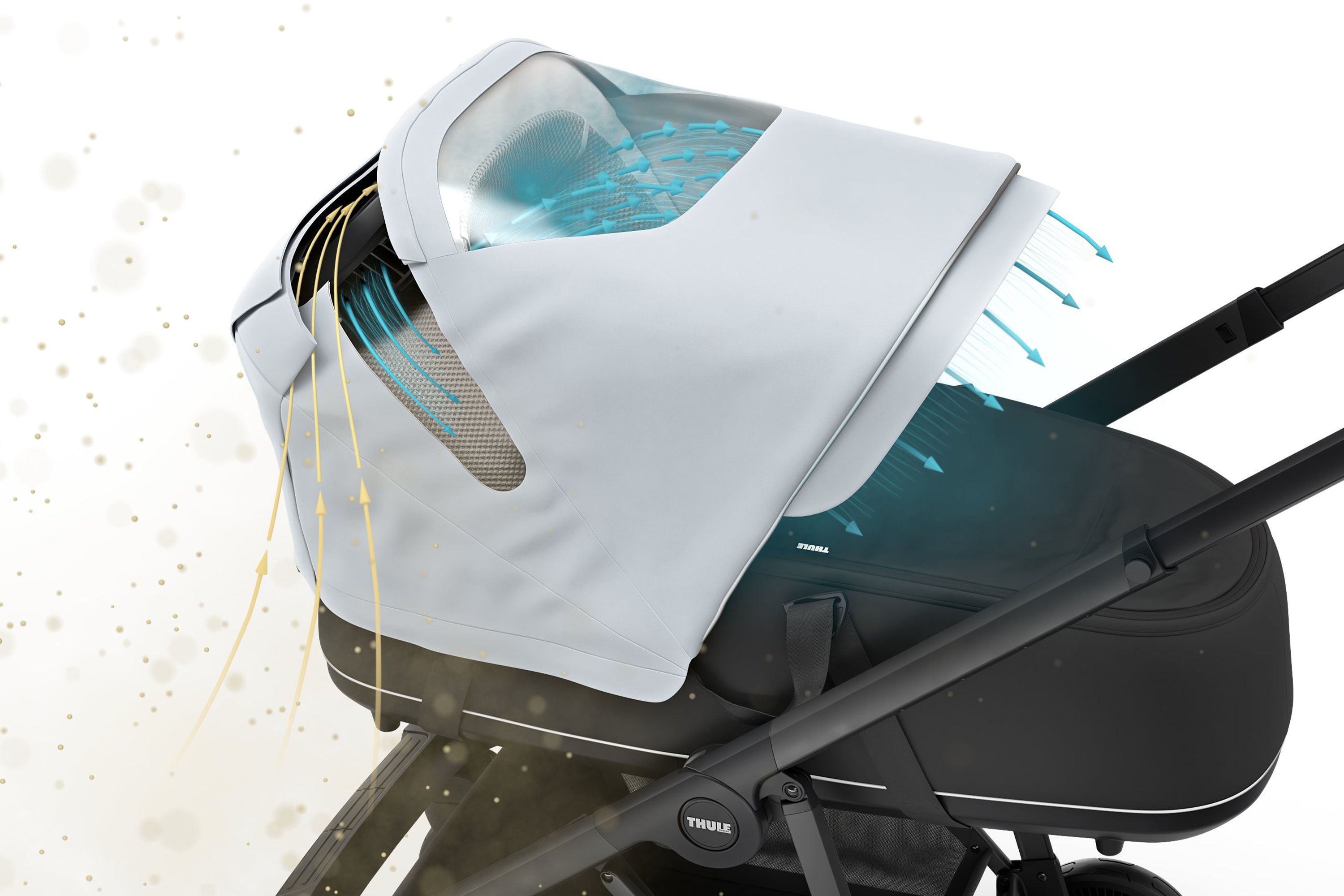 Air pollution is the reality for most families living in cities worldwide. Babies are most vulnerable to the harmful effects of pollution – not only because they travel closer to car exhausts, but because their lungs are in crucial stages of development. The purifying canopy fits perfectly on your Thule Shine baby bassinet and stroller seat – so that you can use it from birth to toddler. For your child’s comfort, the air cleaner canopy has an open-air feeling and a quiet, gentle airflow that does not disrupt their sleep.