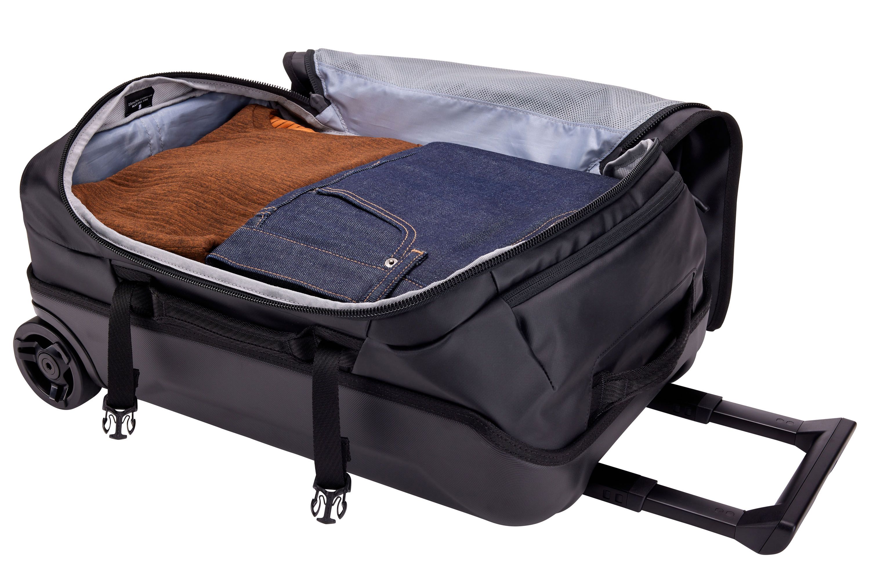 Thule Chasm pyörillä varustettu käsimatkatavaraksi sopiva duffelilaukku on säänkestävä, lyhyille matkoille ja viikonlopun viettoon tarkoitettu matkalaukku.