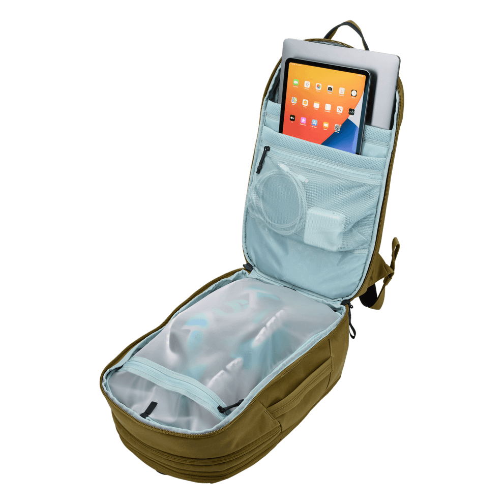 多機能Thule Aion 28Lバックパックは、デイパックを32Lのトラベルバックバックに拡張でき、収納スペースが15% 広がります。