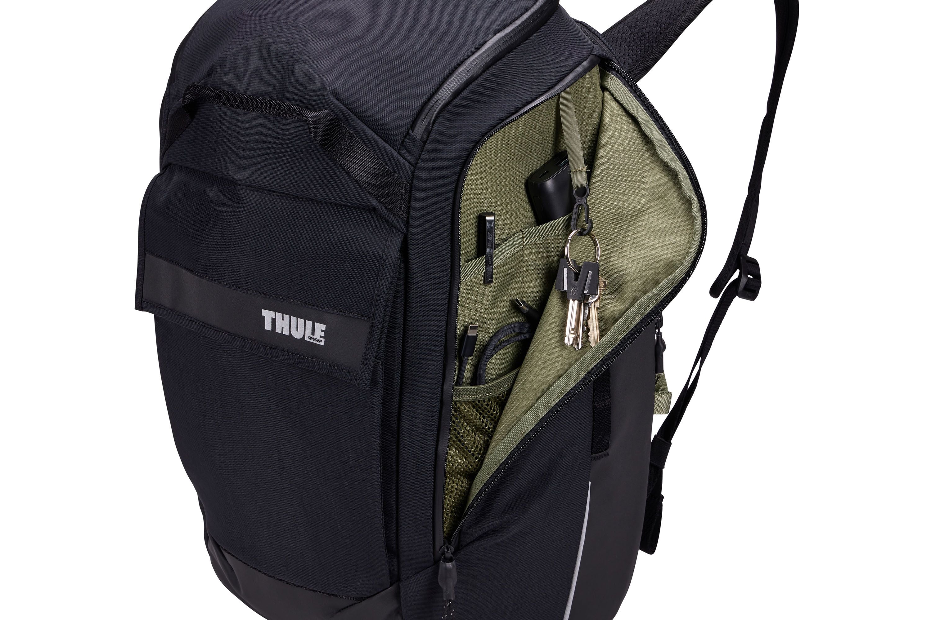 Hybrydowa sakwa rowerowa Thule Paramount o pojemności 26 l szybko zmienia się z sakwy w plecak, co jest idealnym rozwiązaniem przy codziennych dojazdach do pracy albo dłuższym przebywaniu na mieście.