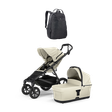 Thule Urban Glide 4-wheel stroller in Soft Beige + Thule bassinet in Soft Beige + Thule Alfi ISOFIX car seat base + Thule Maple infant car seat in Black + Thule Urban Glide 3 car seat adapter for Maxi-Cosi®