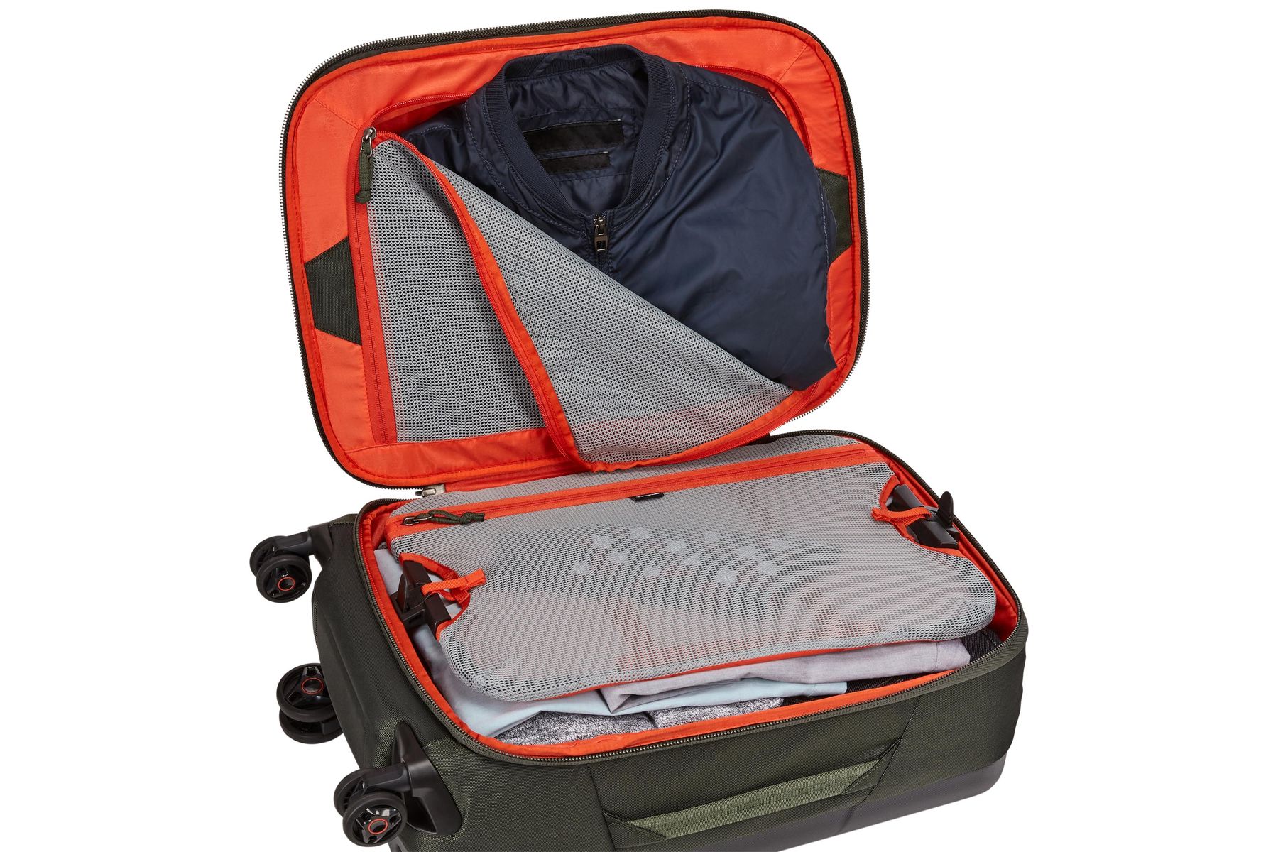 Thule Subterra 登機旅行箱,內附隔層板可有效利用收納空間並減少衣物皺摺。